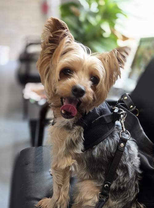 She would do great in a home with other dogs her size, but definitely NO CATS! She is quite the hunter outside chasing birds and squirrels and even stray cats if they happen to get into the yard. She is submissive, but don’t mistake that for a pushover. She is quite the mom when she needs to put another dog in line for something, but she doesn’t start anything. Even though she isn’t your typical looking yorkie, with her longer legs and her full tail, Amber is a very beautiful girl. She has the most angelic face and is just the sweetest baby. She is such a good girl and will use the pee pads when she needs to, but will also do her business on her many trips outside.
